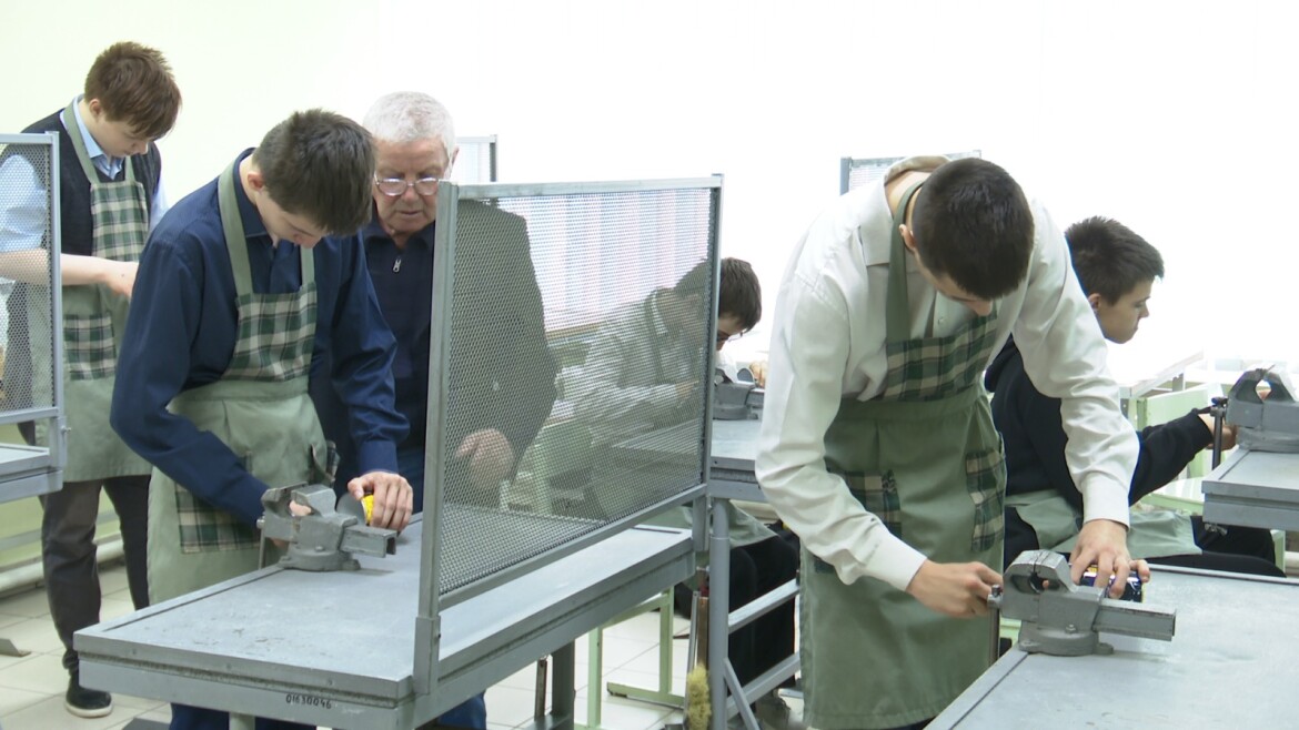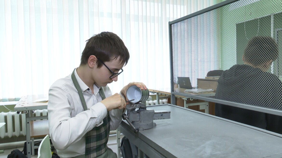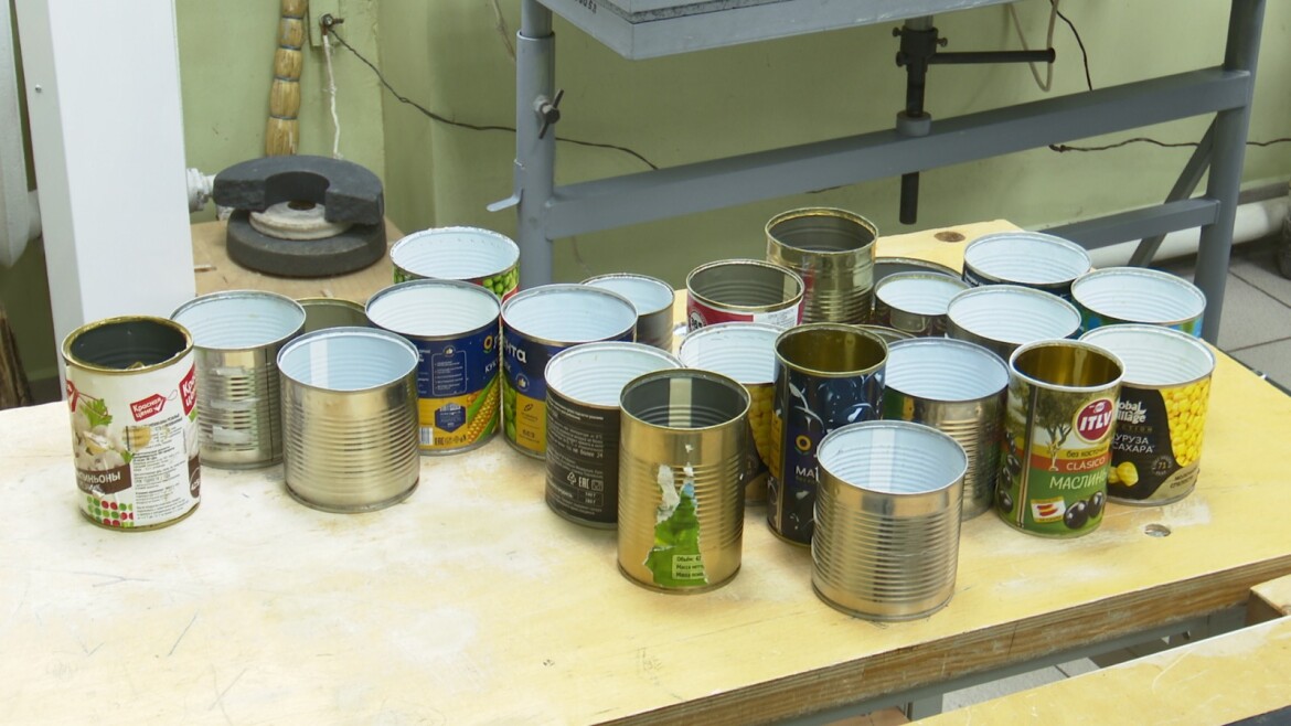 «Задача такая: чтобы вот эти банки, которые нам принесли, они не так ровно нарезаны, у них там появляются острые концы. Мы их зачищаем, убираем. Сначала убираем, а потом ребята зачищают уже и готовые банки для свечей», — пояснил Ренат Калимуллин — преподаватель по трудовому обучению.