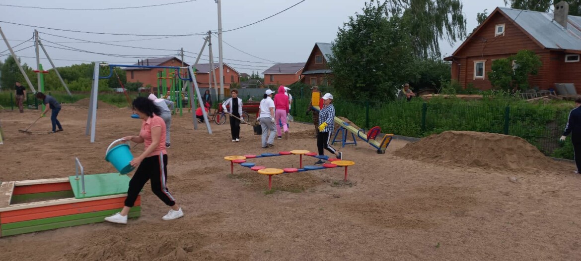 В деревне Куюки в Пестречинском районе Татарстана прошла акция по благоустройству и очистке территории новой детской площадки на улице Дачная. На объект вышли сотрудники лицея «Алгоритм», детских садов «Сказка» и «Золотая Рыбка» — в общей сложности более 30 человек.