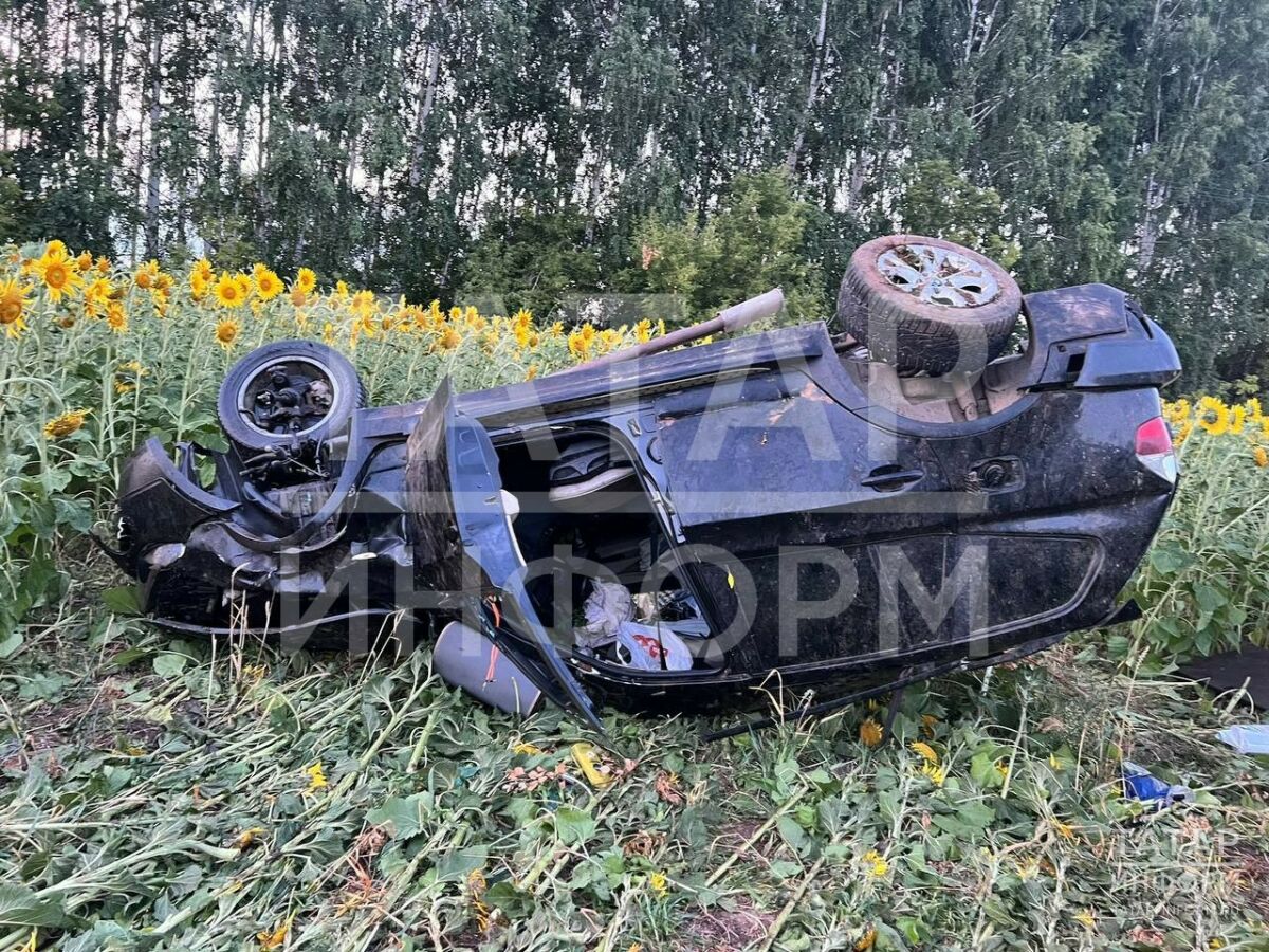 В Лаишевском районе BMW улетел в кювет и лег на крышу, трое человек в больнице