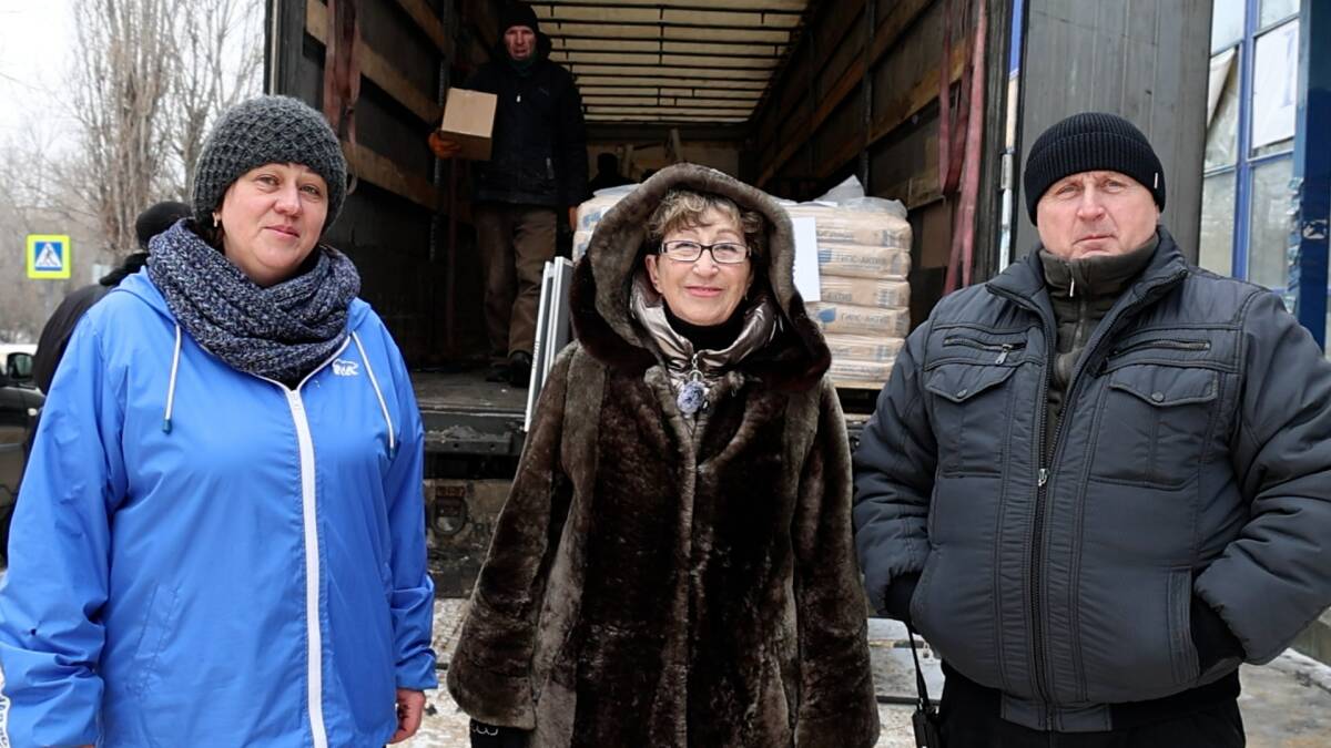 Масштабная разгрузка состоялась и в Рубежном, куда доставили строительные материалы, в том числе 20 тонн шестиметровой обрезной доски, и пластиковые окна для восстановления почтовых отделений города.