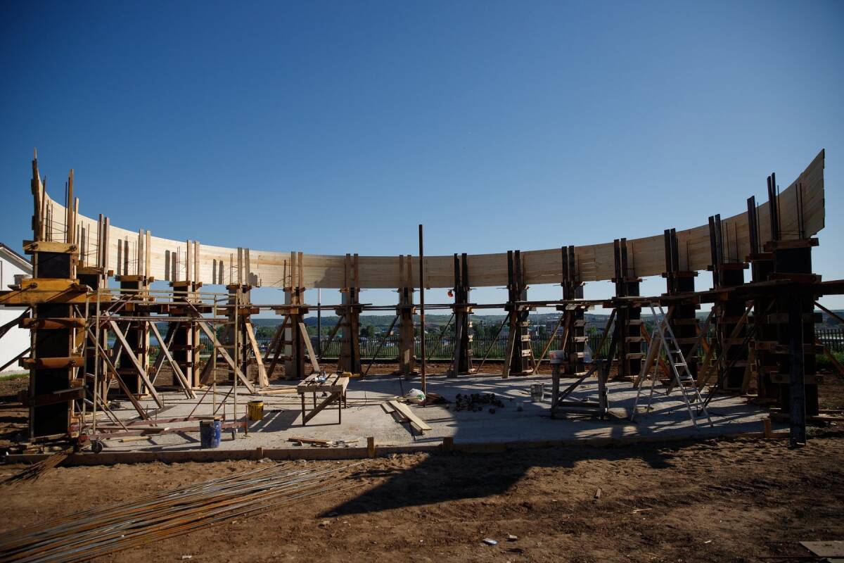 В исторической части Мамадыша продолжают создавать Аллею Славы. Сейчас рабочие занимаются монтажом опалубки – специальной конструкции, необходимой для придания бетонным элементам точной формы. Все силы на данный момент сосредоточены на возведении большого круга, который по проекту станет центральной архитектурной доминантой будущей аллеи.