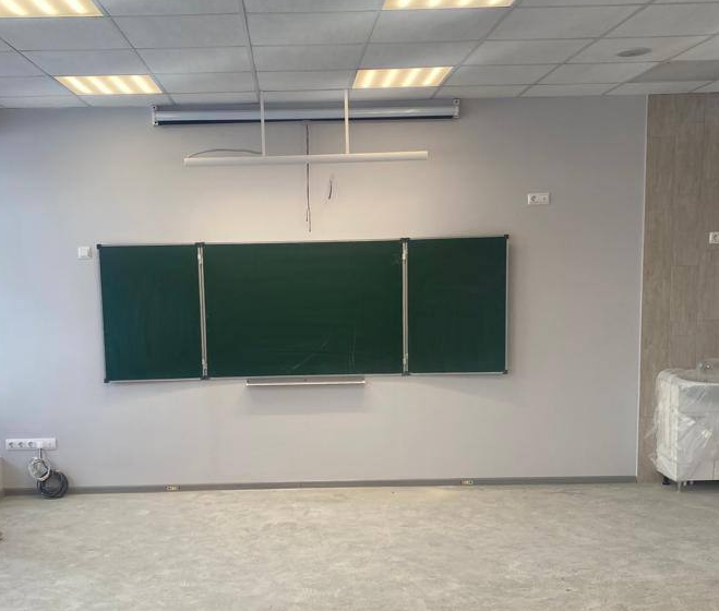 6 марта в кабинетах третьего этажа началась установка парт и досок. На втором этаже расстановка мебели начнется к концу следующей недели. В целом, капитальный ремонт выполнен на 85%.