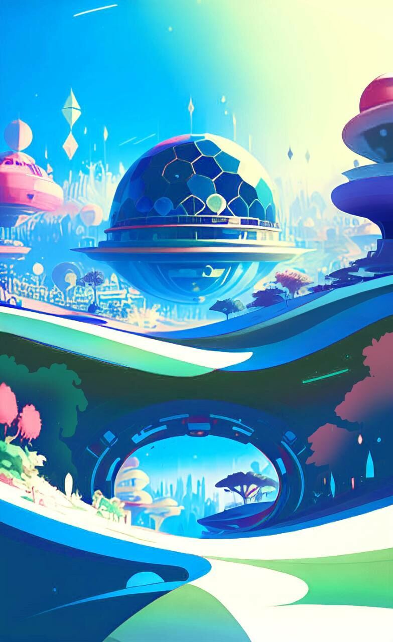 Купол возник в окружении пятиэтажек, посреди застройки прошлого века как некий символ нового века. Идея мурала — используя футуристическую форму купола, полусферу, изобразить видение города будущего.