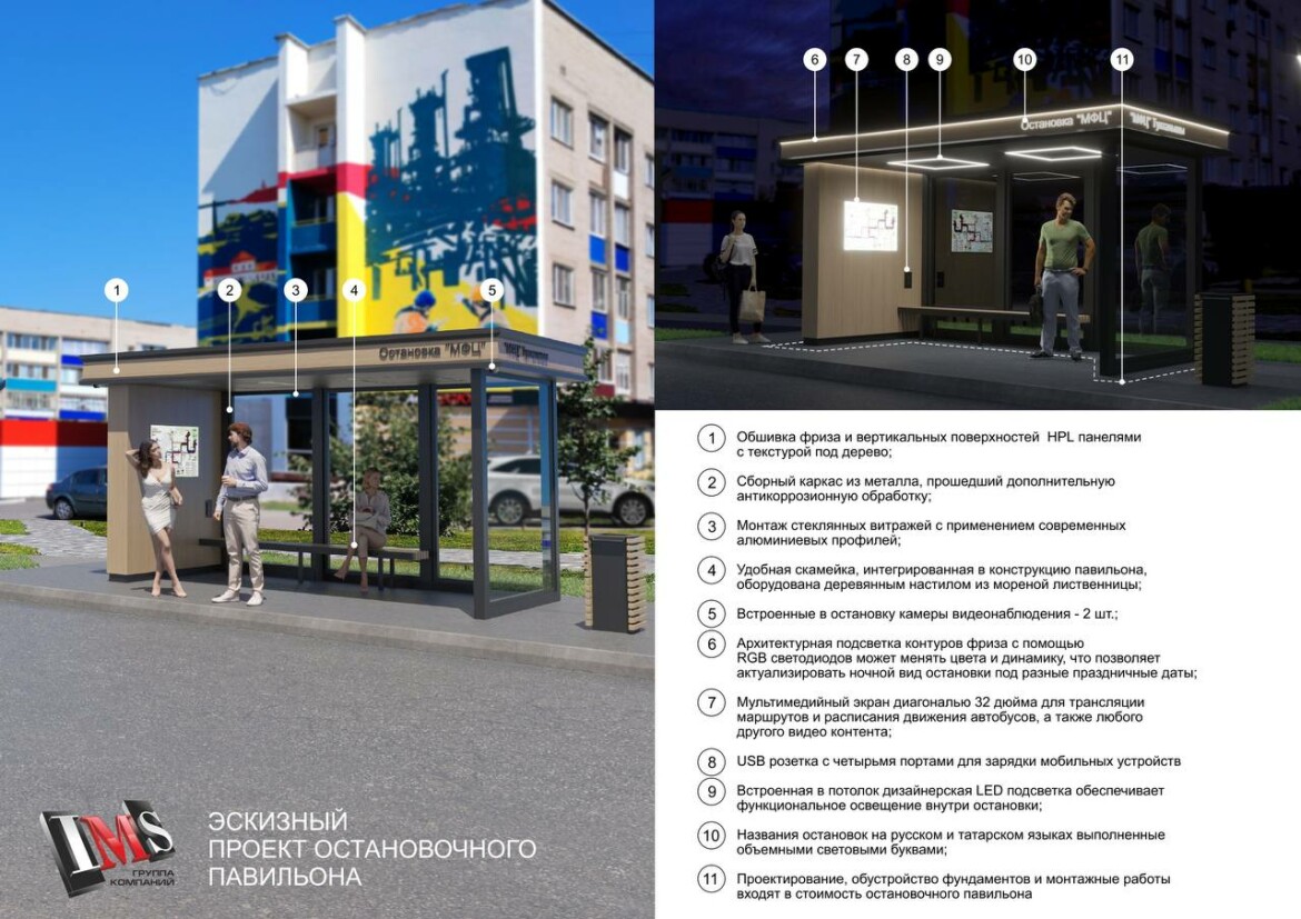 В Менделеевске появятся антивандальные остановки с видеокамерами, подсветкой и витражами