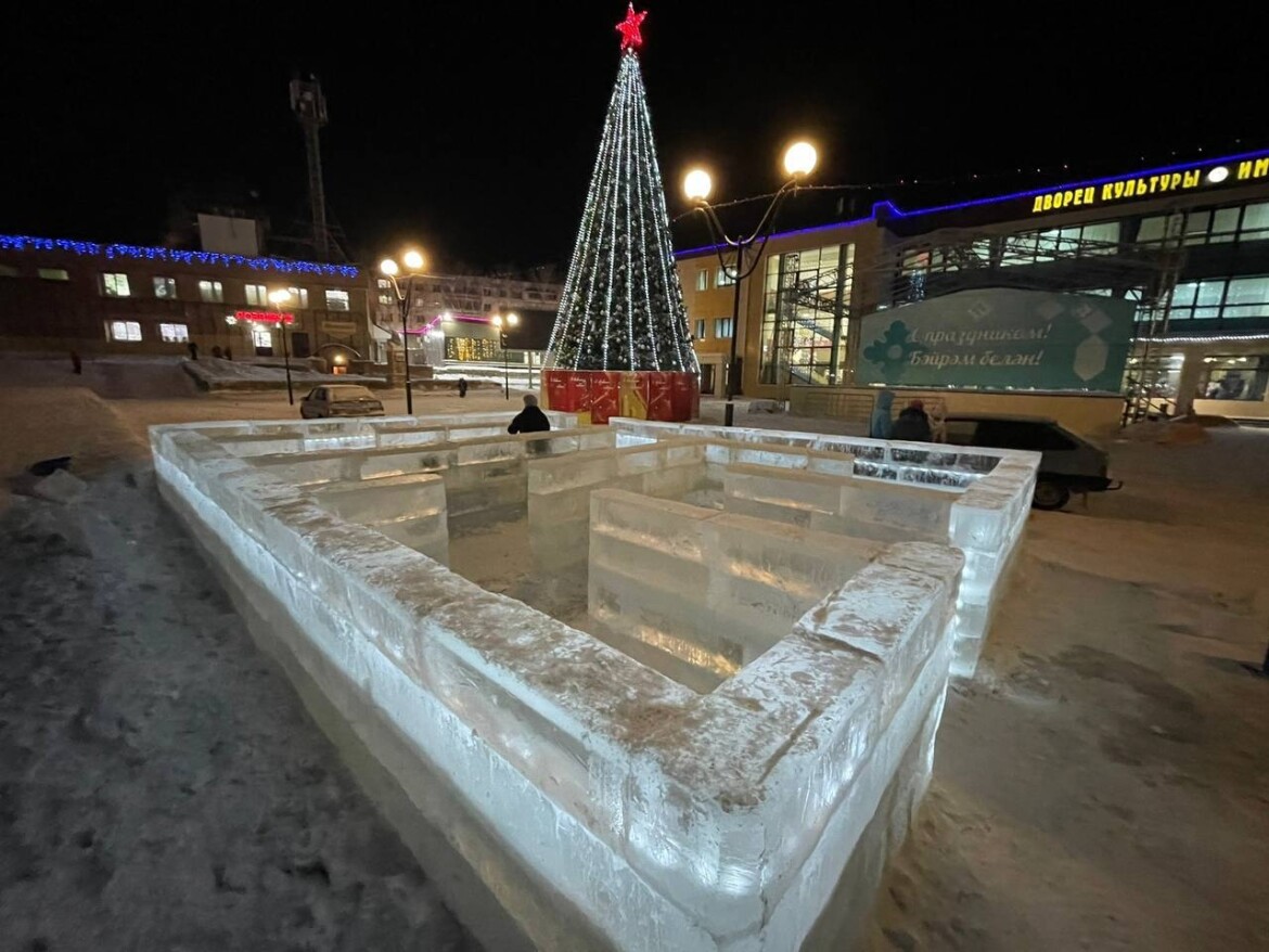 Рядом с резиденцией волшебника на площади Дворца культуры им.С.Гассара наряжена центральная елка. Там же появился ледяной городок с лабиринтом, установлена деревянная горка, малые архитектурные формы.