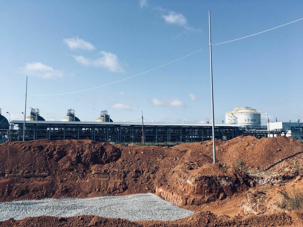 Строители начали готовить свайное поле под основное оборудование и здания. Забито уже около 50 свай. На участке для налива автоцистерн приступили к обустройству фундамента. Территорию отсыпали гравием и провели обвязку. Следующим этапом станет монтаж емкостного оборудования.