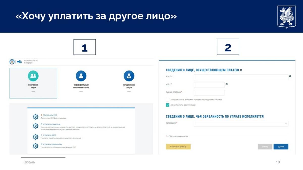 Кроме того, доступен сервис «Хочу уплатить за другое лицо», позволяющий оплатить налоги за родственников или других лиц.
