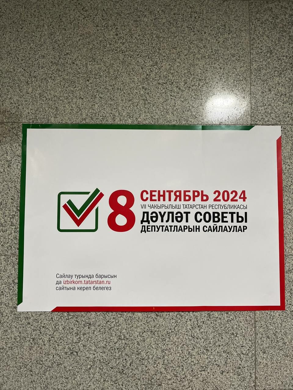 На постере написана дата проведения выборов (8 сентября) и подписи на татарском языке. Также в левом нижнем углу плаката напечатана ссылка на основной сайт ЦИК РТ.