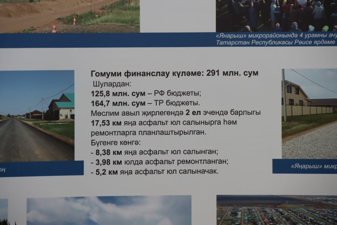 Альберт Хузин отметил, что в текущем году в райцентре проведены масштабные работы по асфальтированию улиц. Ремонт охватил улицы микрорайонов Аэропорт и Янарыш, улицы Колхозная, Комсомольская, Кооперативная. В общем счете проложено около 10 км дорог, бюджет составил более 125 млн рублей. Для небольшого райцентра — это очень значимый объем.