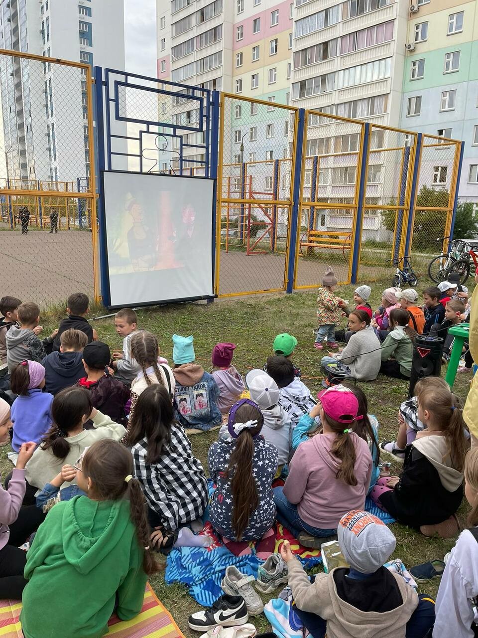 Накануне жители 60-го комплекса, а также ближайших домов смогли посмотреть детские мультфильмы, получить сладости за правильные ответы на вопросы о главных мультипликационных героях.