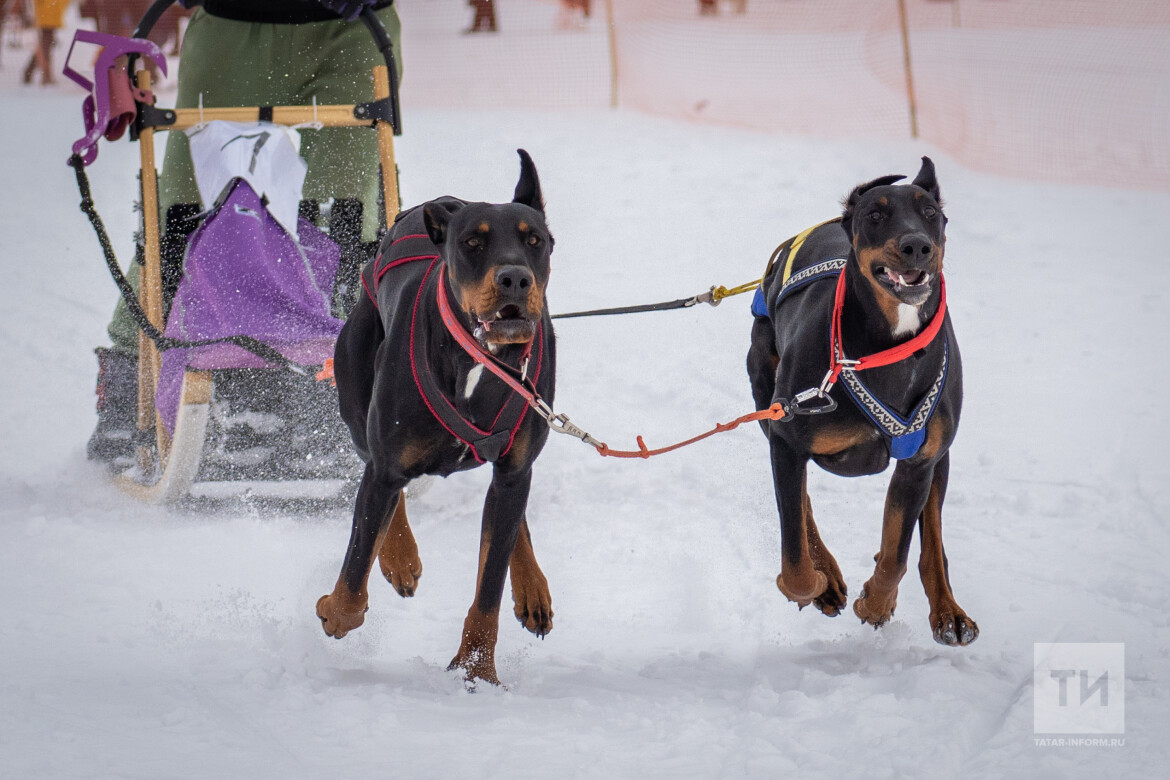 На стартовой площадке на реке Свияге сегодня звенел разноголосый лай. Маламуты, сибирские хаски, овчарки и самоеды — каких только четвероногих бегунков сегодня не было на гонках «Золотой волк Свияжска»! Самыми выделяющимися участниками стала пара доберманов — Зефир и Лера. По словам хозяина Ленара Хакимова, в мире гонок они новички, но с волнением справляются успешно.