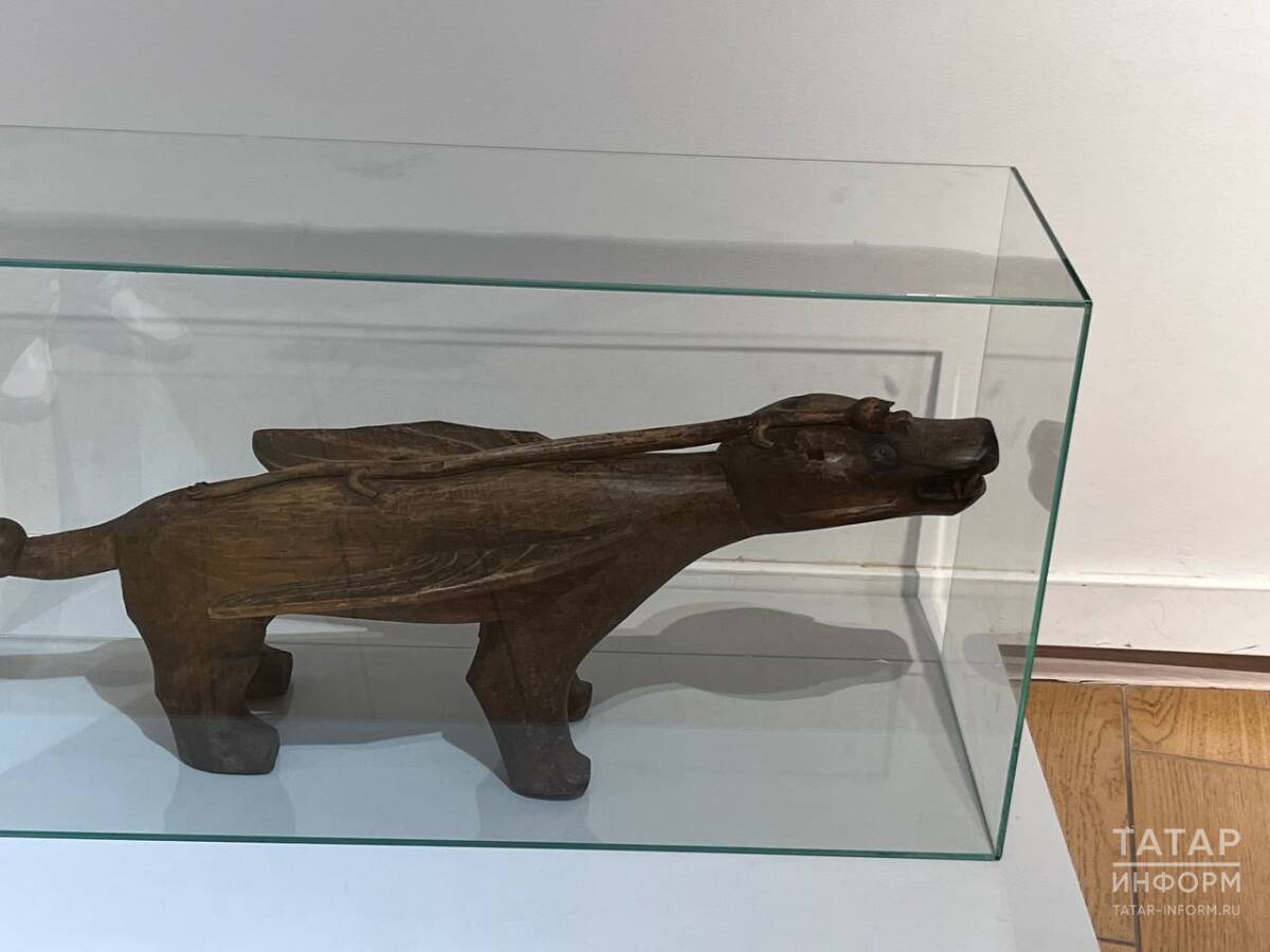 «Наш уникальный экспонат – летающий тигр. Это изделие из необычных материалов, из рыбьей кожи, птичьих шкурок и ровдуги. Ровдуга – кожа оленя, выделанная под замшу, снимается с замороженной шкуры оленя», – сообщает Титорева.