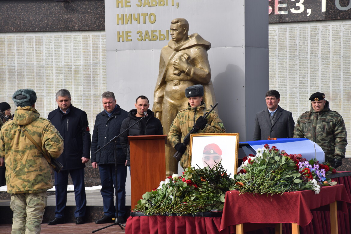 Прощание с бойцом-героем состоялось на территории мемориального комплекса Памяти и Славы у Вечного огня 2 апреля 2022 года. Проводить молодого парня в последний путь пришли не только горожане, но и жители сел и деревень со всего района. Не только женщины, но и мужчины не могли сдержать слез…