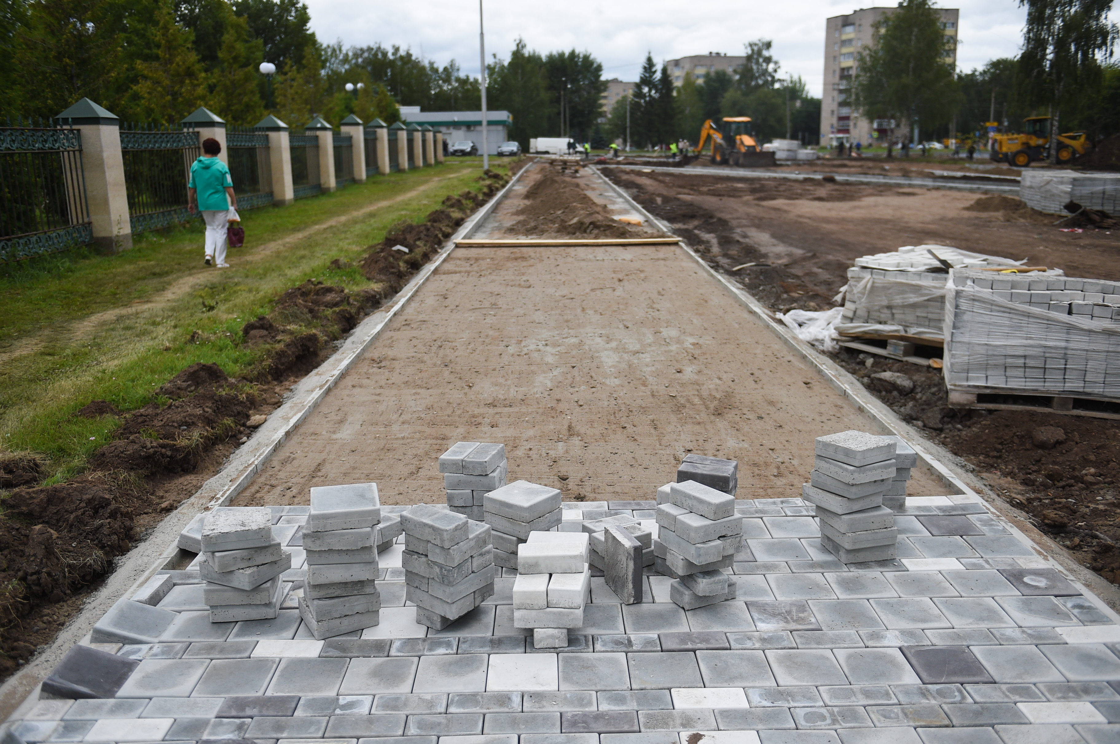Параллельно ведутся работы по обустройству подъездных путей и пешеходных зон к новой школе в рамках проекта «Безопасная дорога к школе».