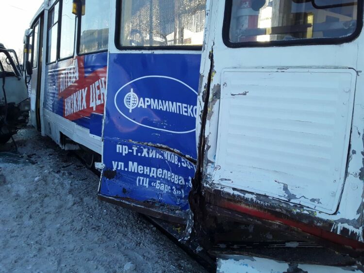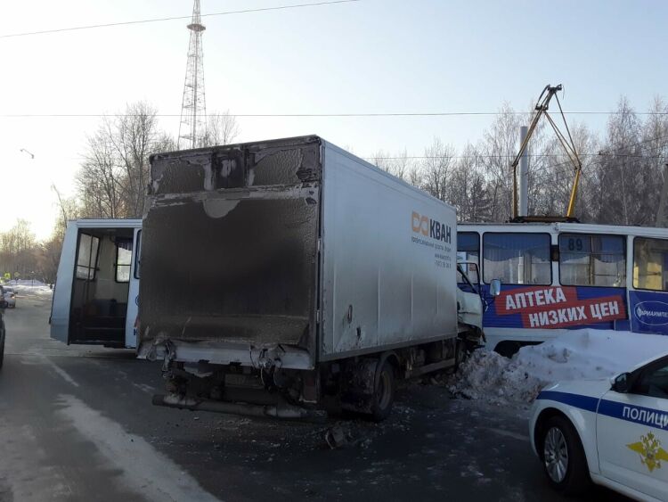Авария произошла накануне около двух часов дня напротив дома № 82а по проспекту Химиков. 33-летний водитель грузовичка «АФ» не уступил дорогу трамваю и протаранил его.