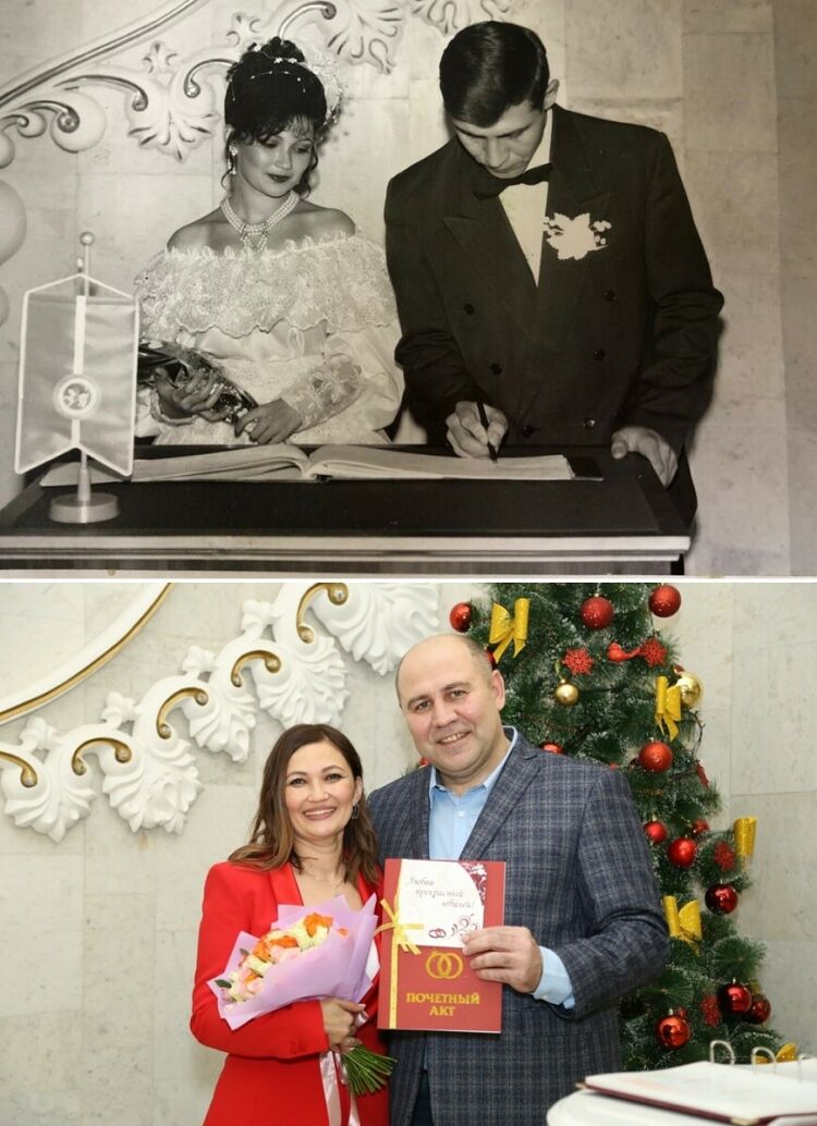 Начальник отдела торжеств Управления ЗАГС Румия Сахабова рассказала, что во Дворец бракосочетания или в центр «Милосердие» приходят супруги, их дети, внуки, близкие друзья.