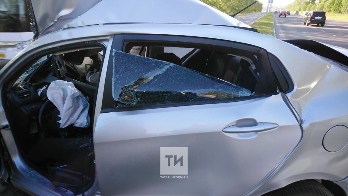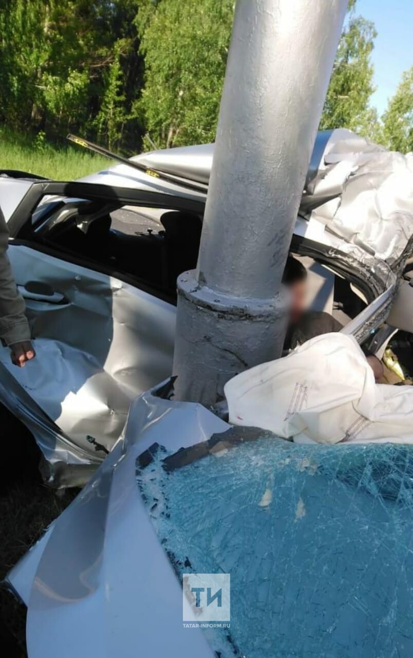 В Нижнекамске автомобиль расплющило об столб, водитель получил тяжелые травмы