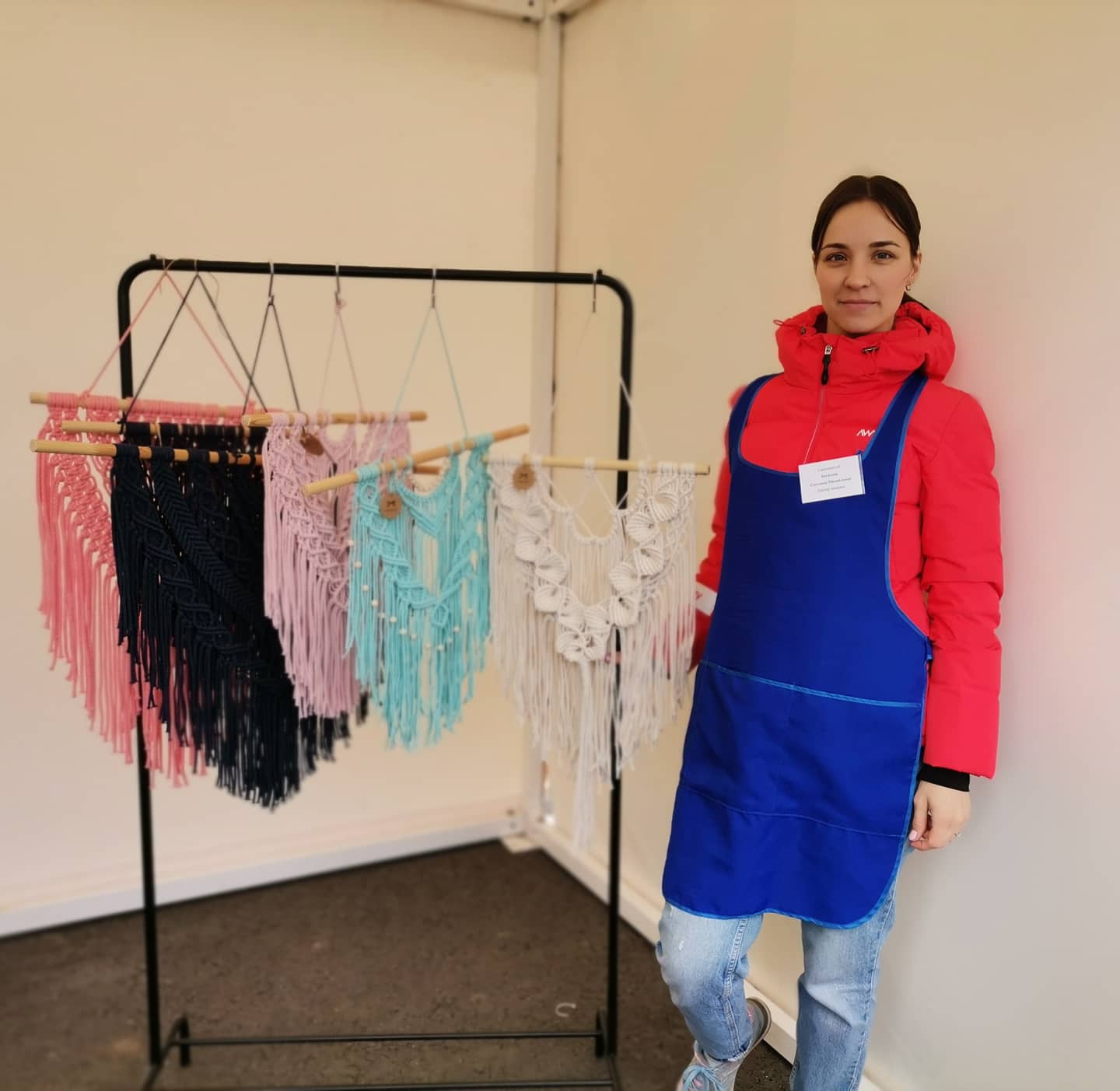 Светлана Богатова представила панно из макраме. Этим видом творчества девушка увлеклась, находясь в декретном отпуске. Но и после завершения отпуска по уходу за ребенком Светлана решила не бросать хобби. Зарегистрировалась как самозанятая и занимается активным поиском клиентов и совершенствованием в своем мастерстве. Самые крупные заказы — на изготовление свадебных арок получает преимущественно в летний период. «С помощью ярмарки надеюсь сделать свой заработок более стабильным», — поясняет девушка.
