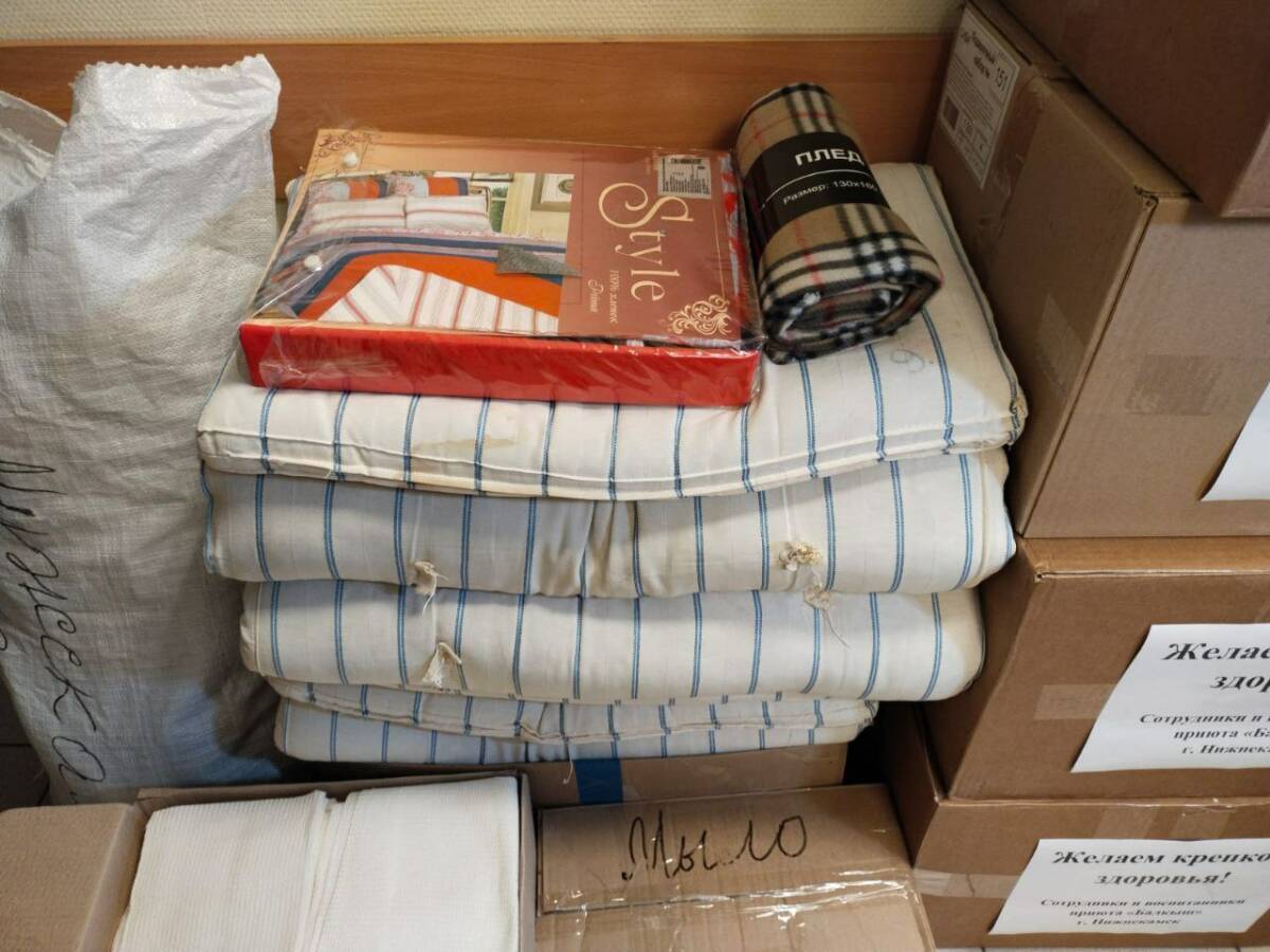 Коробки с постельным бельем, матрацами, ходунками и костылями принесли воспитанники и сотрудники центра «Балкыш». Средства гигиены, некоторые лекарства, шприцы и носки занесли пожарные 62-й и 63-й пожарных частей.