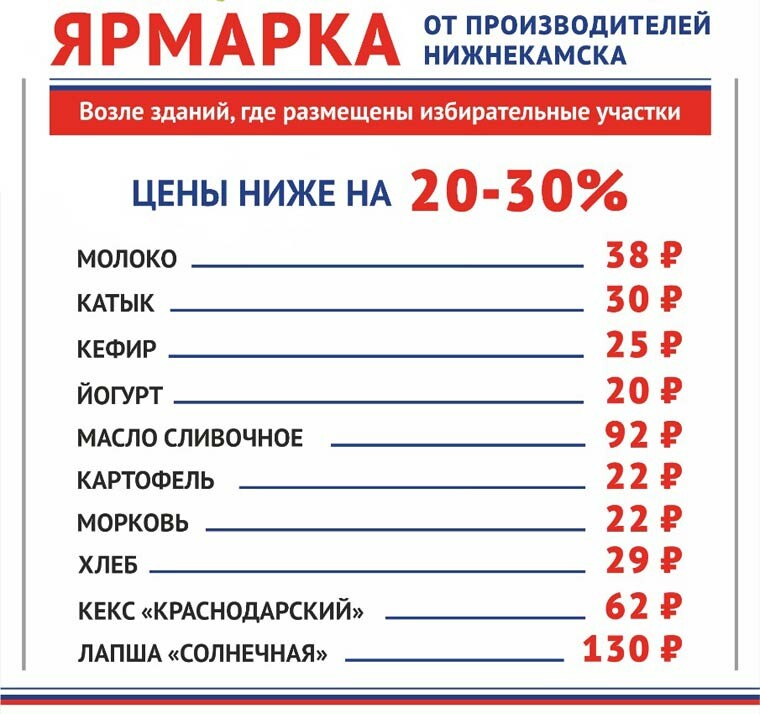 Цены на ярмарках будут ниже рыночных на 20–30%. Торговые ряды организованы возле каждого избирательного участка.