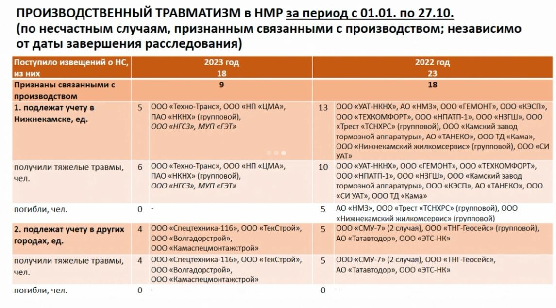 По итогам проведенных расследований, половина несчастных случаев связаны с производством, девять из них — с тяжелыми последствиями. Тяжелые травмы получили десять человек. За аналогичный период в прошлом году пострадали 15 человек, погибли пять.
