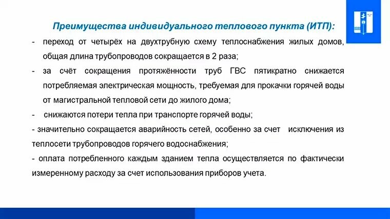 Переход связан с тем, что ЦТП несут большие технологические потери. На данный момент в Нижнекамске около 10% домов оснащены индивидуальными тепловыми пунктами.
