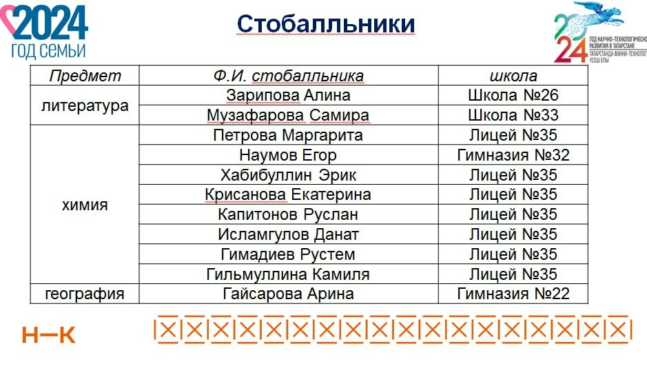 Из отличившихся учеников один сдавал ЕГЭ по географии (всего таких школьников три по РТ), два по литературе и сразу восемь по химии. К слову, семь из них — выпускники лицея №35.