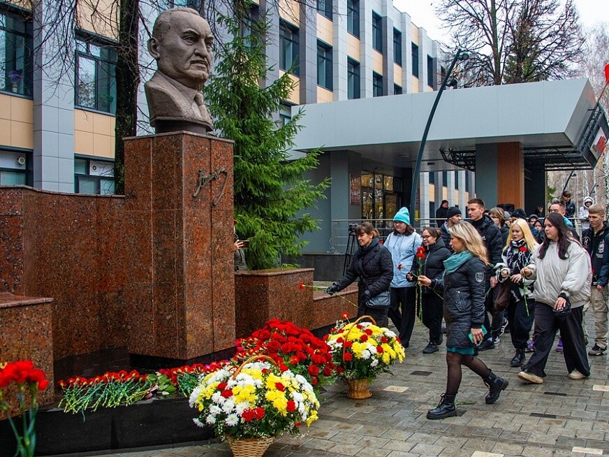 Сегодня в Нижнекамске проходят торжественные мероприятия, посвященные первостроителю. Так, на городском кладбище, где захоронен Евгений Королев, состоялся памятный митинг. Возложение цветов к подножию памятника Королеву прошло на территории Нижнекамского политехнического колледжа, который носит его имя.