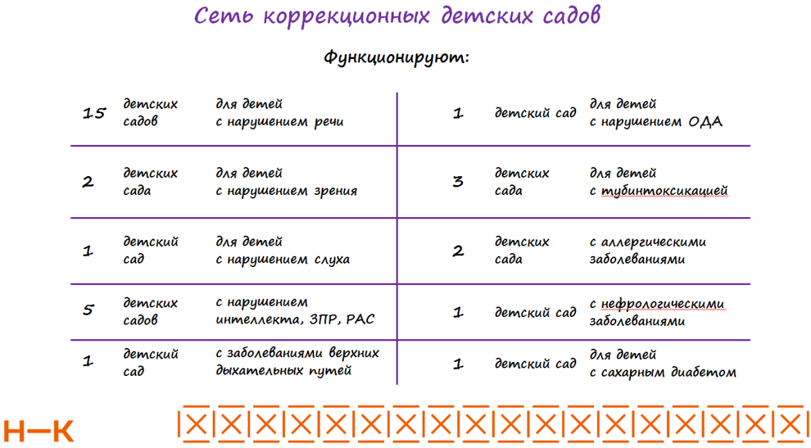 Для детей с ограниченными возможностями здоровья и различными заболеваниями функционирует 181 специализированная группа.