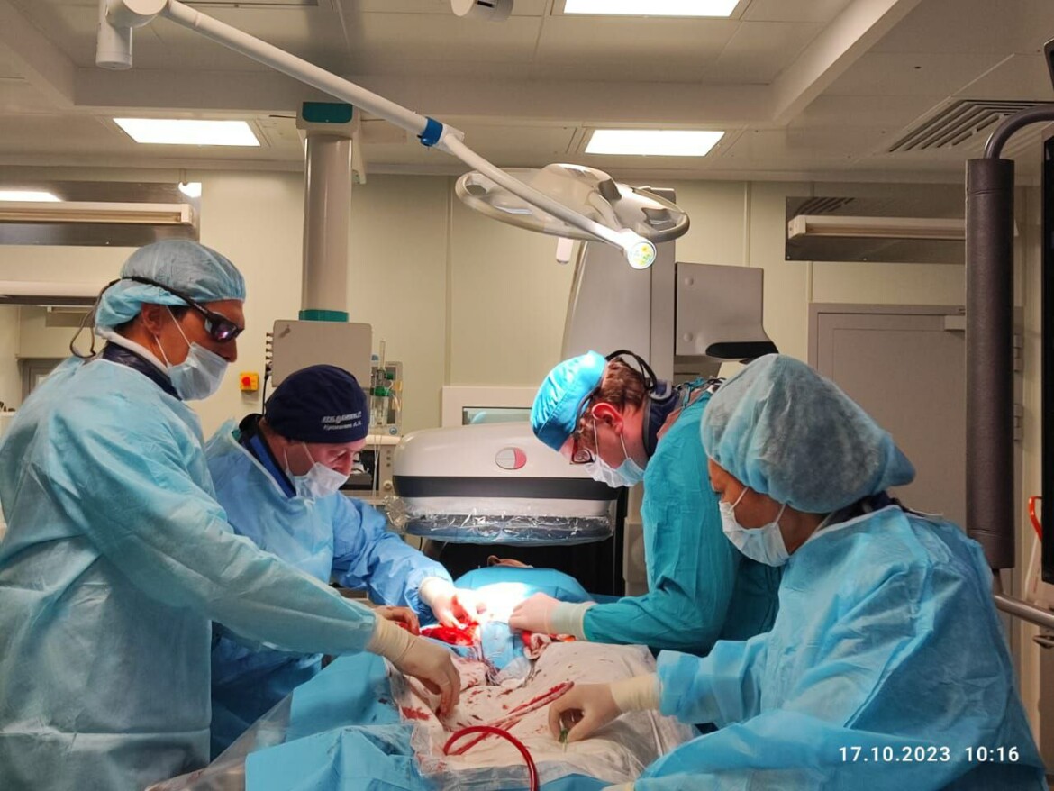 Операции провели мультидисциплинарные бригады врачей, в состав которых вошли хирурги и анестезиологи. Процессом руководили два опытных рентгенохирурга – специально приглашенный коллега из республиканского кардиоцентра Уфы Тимур Хафизов и завотделением рентгенохирургических методов исследования НЦРМБ Алексей Крохалев.