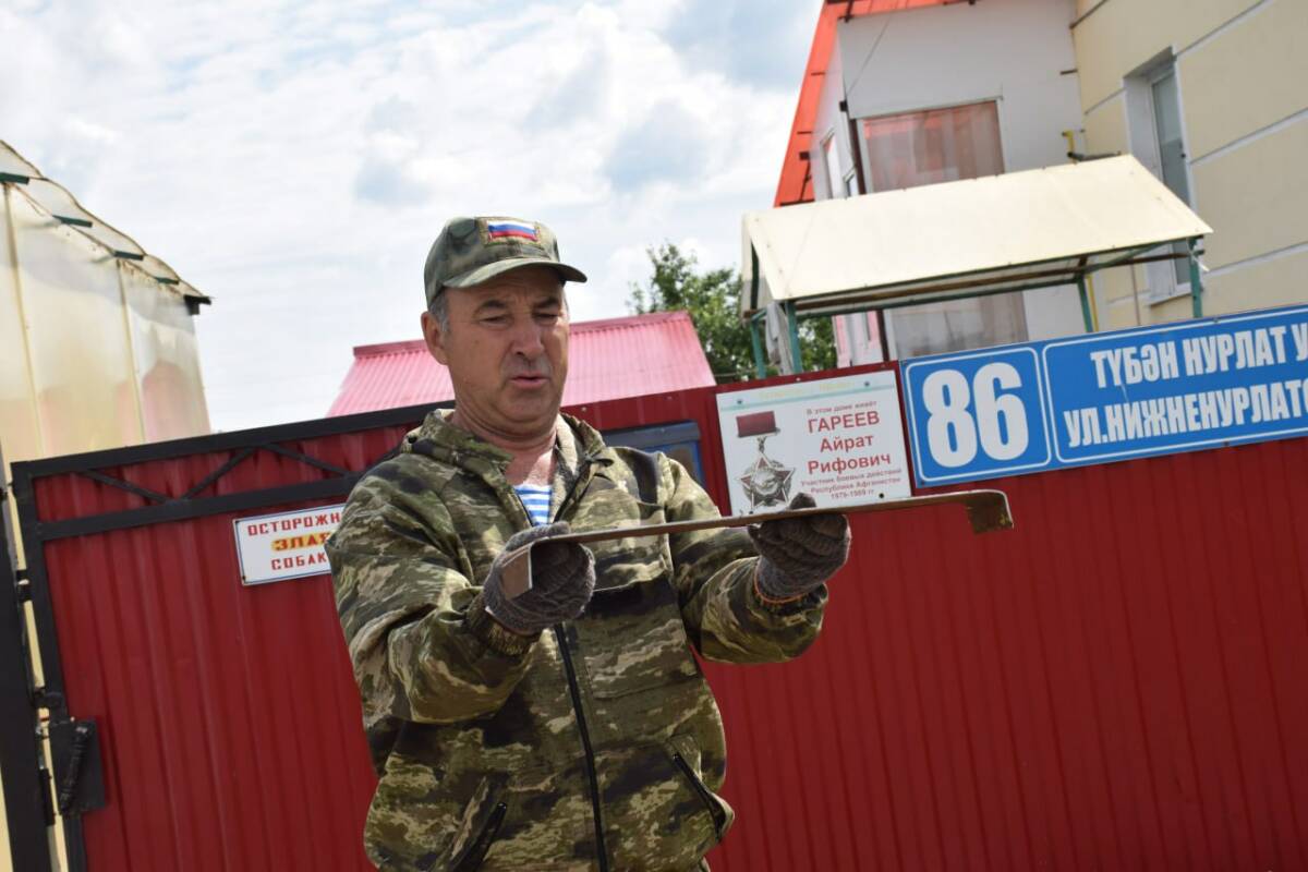 «Руководитель нашей общественной организации Ришат Сафиуллин предложил установить что-то, что дополнит мемориал. Я сразу представил себе этот образ: берет, ремень. Все это знакомо до боли, родное, – рассказывает Гареев. – В Казани купил кокарду, пряжка – настоящая, армейская, с серпом и молотом. Хотелось, чтобы все было как при жизни».