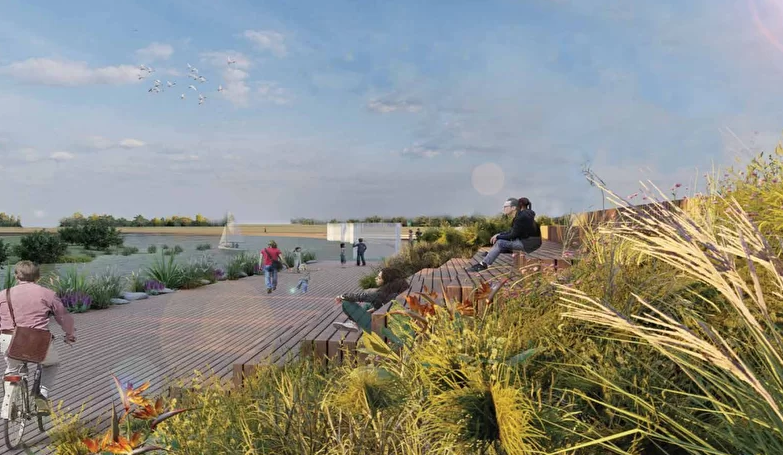 Также в общественном пространстве появится амфитеатр, пирс, прогулочные зоны, теневые навесы, спасательная вышка.