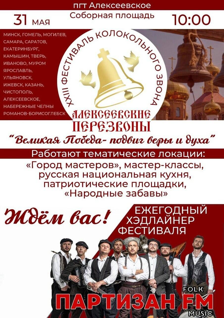 31 мая в 10:00 в Алексеевском районном центре начнется XXIII Фестиваль колокольного звона «Алексеевские перезвоны – 2025». Темой мероприятия станет «Великая Победа – подвиг веры и духа», сообщили организаторы.