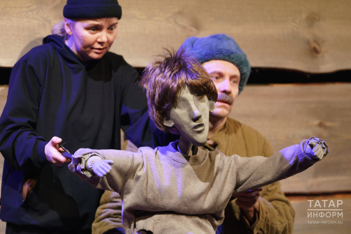Вместе с Эмилем Талиповым в спектакле задействованы артисты-кукловоды Валерий Антонов и Анна Зиннатуллина. Уже до начала спектакля они встречали первых зрителей, создавая образы из постановки. Вот не Талипов, а впрямь Андрей Соколов тянет папиросу, привалившись к стене, и что-то бормочет с сильным южным акцентом, а непоседливый Ванька самозабвенно играет с мячом – едва ли он слушает, что бормочет ему отец. Зрители еще только занимали свои места, а от сцены уже было не оторвать глаз.