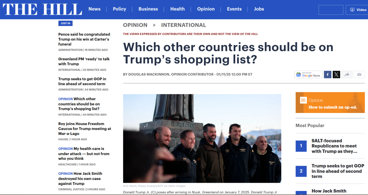 «Антиутопия, в которой американские морпехи гоняются за датчанами по арктическим льдам, канадская граница обставлена «зубами дракона», а в соцсетях наряду с сердечком и лайком в ходу новая реакция — свастичка, — ну, наверное, много всякого такого, что может заставить и заскучать по временам Греты Тунберг и «центра двухпартийной политики». <...> В эти январские недели образ того, чего человечеству следует бояться, рисуется подробно, обстоятельно, ну и завораживает настолько, что даже тот, кому бы давно привыкнуть, что все, отбоялся, не отведет взгляда и, равнодушно проскользив по фронтовым сводкам из «курского приграничья», застрянет на новостях из Гренландии: Трамп-младший приехал, местным кепки раздал, и Господи, что же будет дальше», – пишет журналист.
