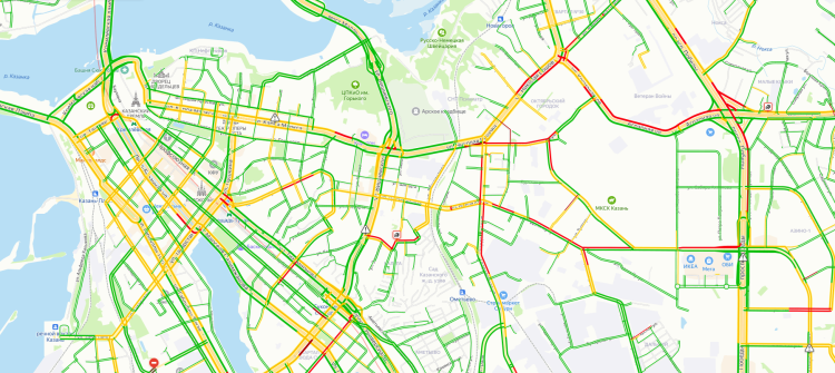 По данным сервиса «Яндекс.Пробки», сегодня утром Казань встала в 8-балльные пробки. Самое затрудненное движение сейчас на въезде в город на улицах Мира, Советской, Копылова и Мамадышском тракте.