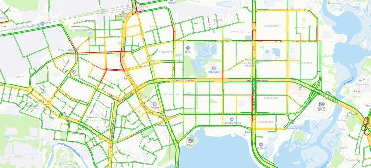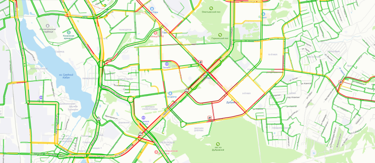 Помимо этого, движение встало на улицах Зорге, Аделя Кутуя, Гвардейской в сторону центра города. Заторы образовались на проспекте Победы в двух местах: от Зорге до Оренбургского тракта и от Сахарова до Аграрной.