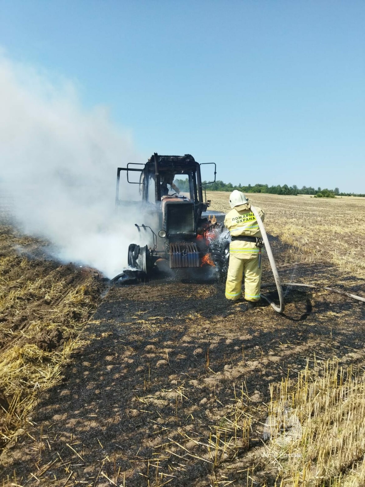 В Пестречинском районе в поле сгорел трактор, водитель не пострадал