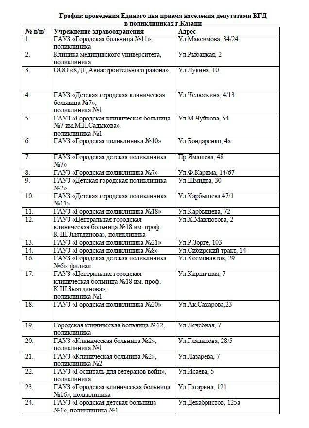 В поликлиниках Казани депутаты Казгордумы проведут единый день приема населения