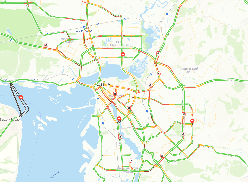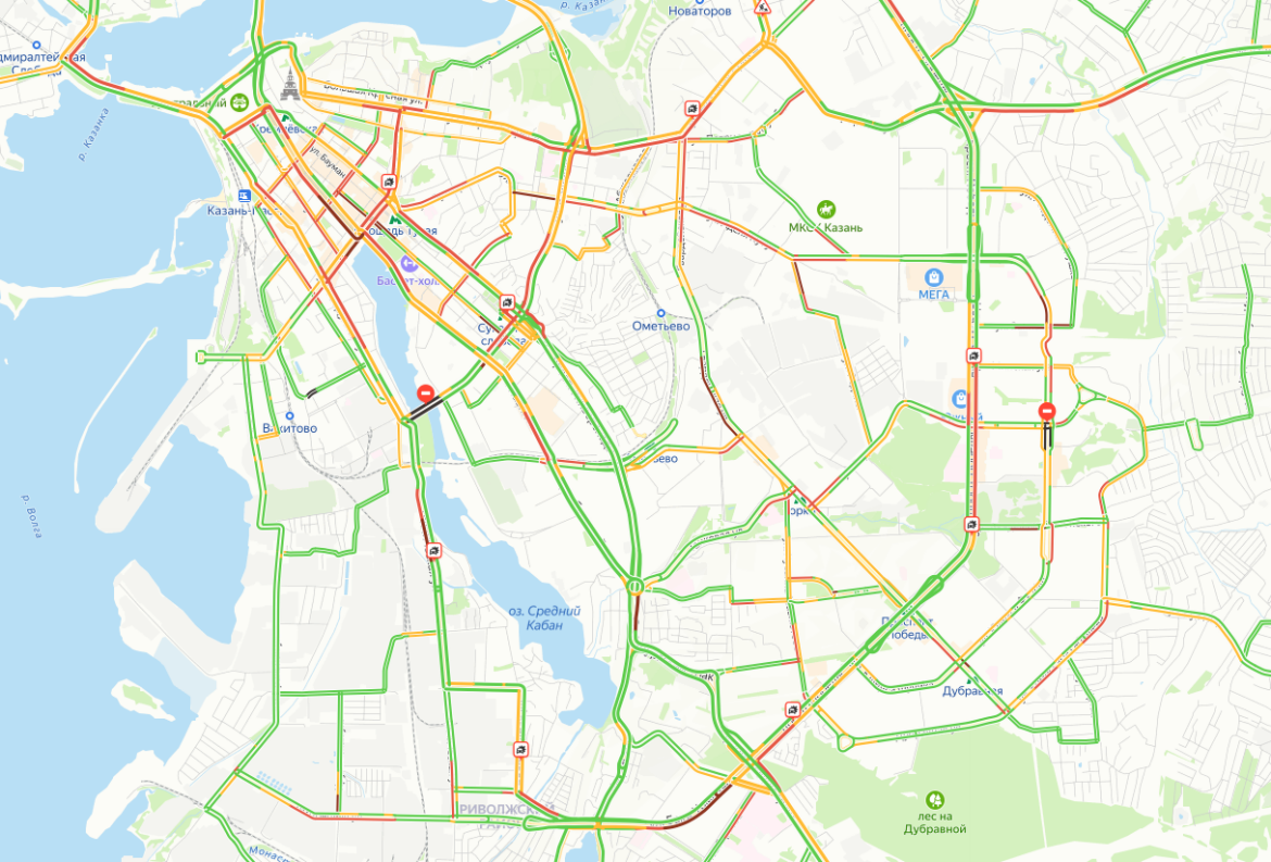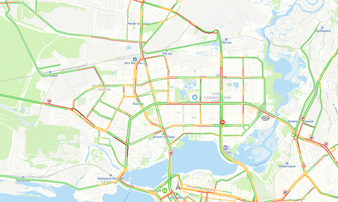 Сегодня вечером на дорогах столицы Татарстана образовались пробки в 9 баллов. Самое затрудненное движение на момент публикации, по данным сервиса «Яндекс.Карты» в центре города, на улице Фрунзе и Горьковском шоссе в сторону выезда из города.