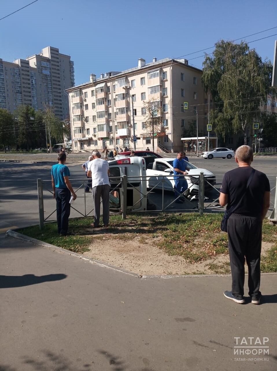В результате ДТП в Казани «Лада Ларгус» опрокинулась на бок прямо на дороге