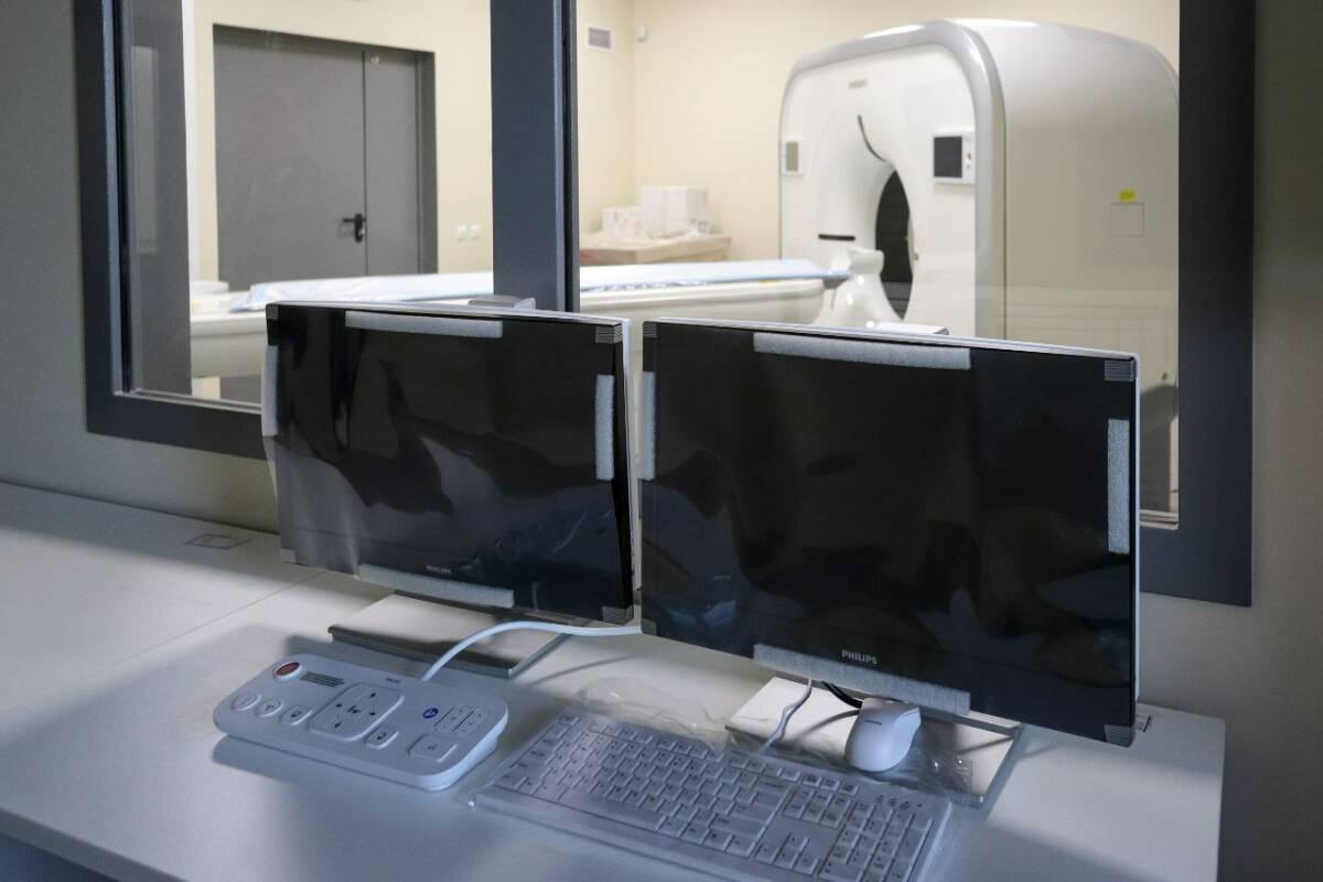 Параллельно идут подготовительные работы внутри здания: в кабинетах устанавливается мебель, в диагностическом отделении уже функционируют флюорограф и маммограф, продолжается установка сложного медицинского оборудования, включая компьютерный томограф и рентгеновский аппарат. Завершена работа по облагораживанию окружающей территории: положены асфальт и тротуары, установлены защитные экраны и ограждения.