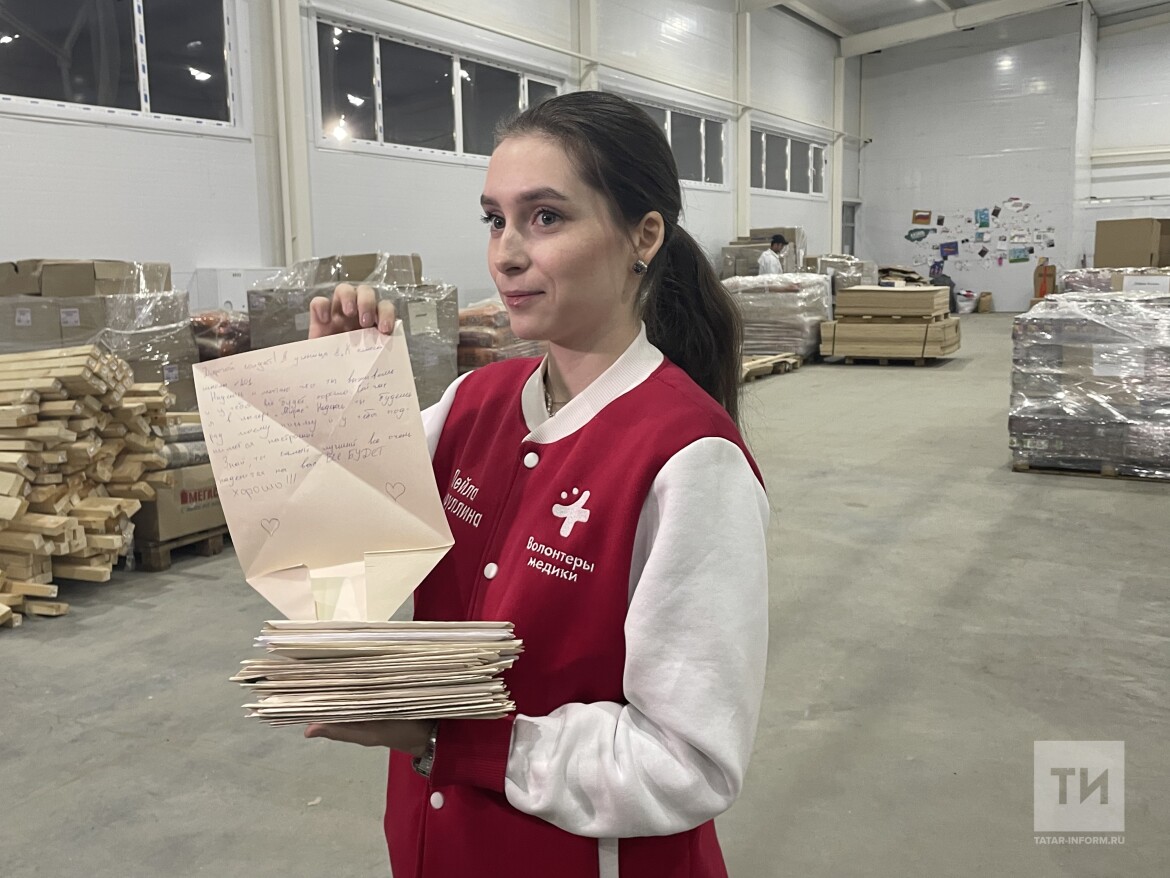 На складе «Татар-информу» рассказали, что волонтеры движения, формируя на складе груз к отправке, вкладывают в вещи записки, рисунки и письма, написанные жителями республики. Всего сегодня вместе с медикаментами, едой и одеждой их отправится около трехсот.