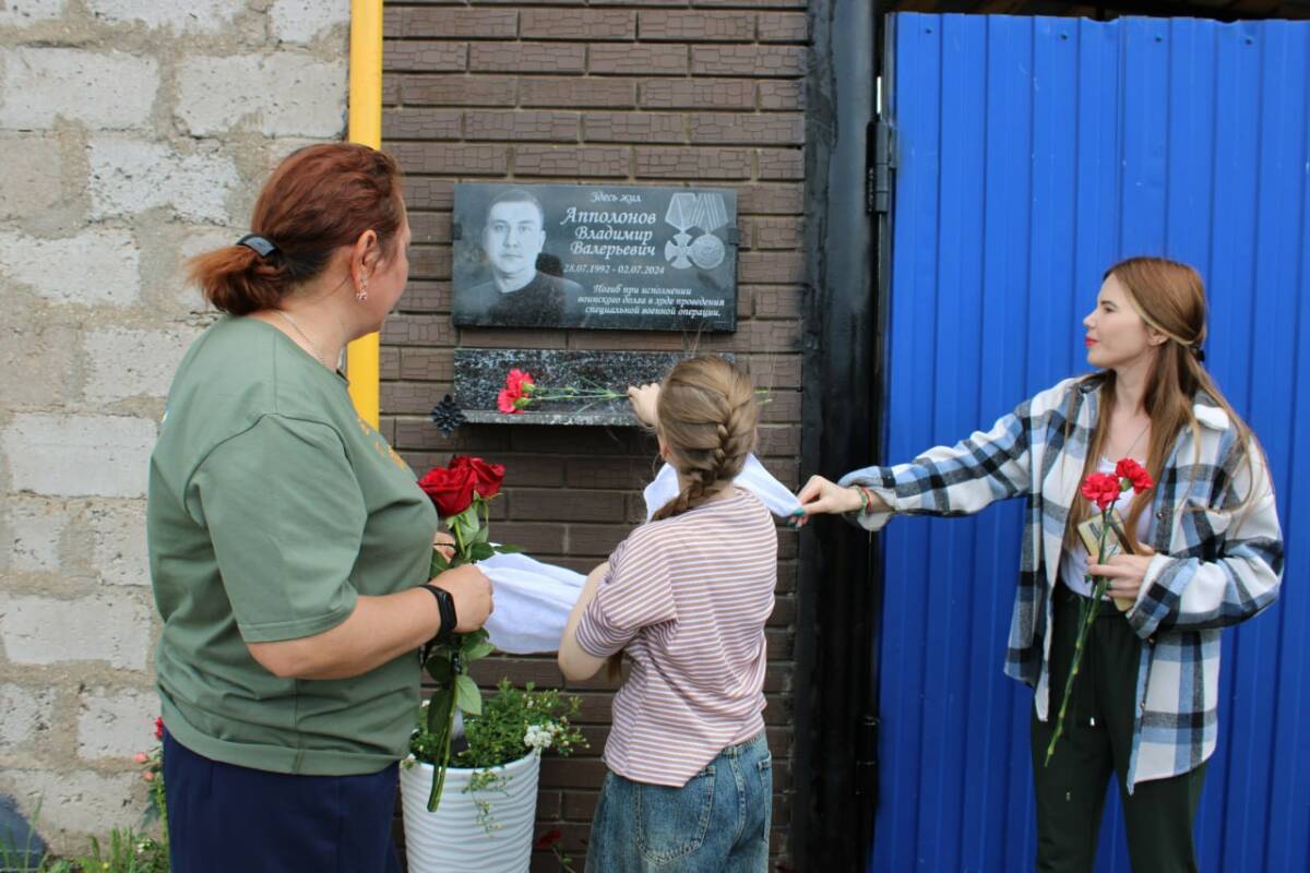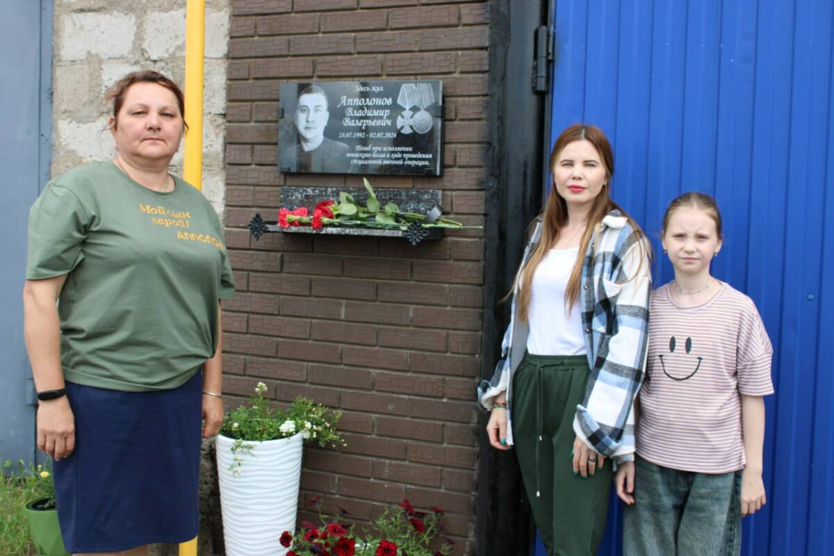 В Старом Заинске прошла церемония открытия памятной доски в честь Владимира Валерьевича Апполонова – участника специальной военной операции, погибшего ровно год назад. Мемориальная табличка появилась на стене дома, где живет мать бойца, Надежда Семеновна.