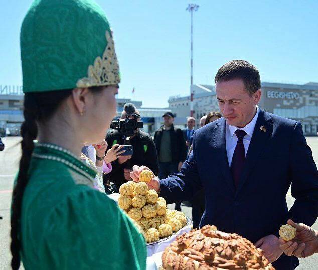 «В Татарстан прибыл премьер-министр Республики Беларусь Александр Турчин. Его встретил Рустам Минниханов. PS: чак-чак на месте», – написала Галимова в посте.