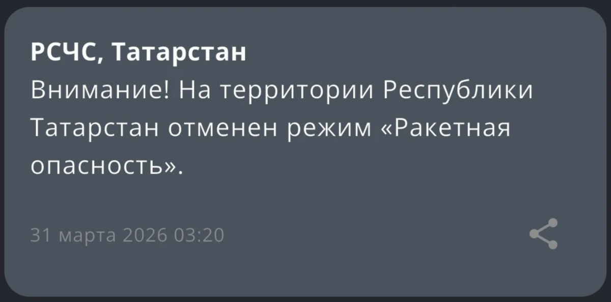 В Татарстане 1,5 часа действовал режим ракетной опасности