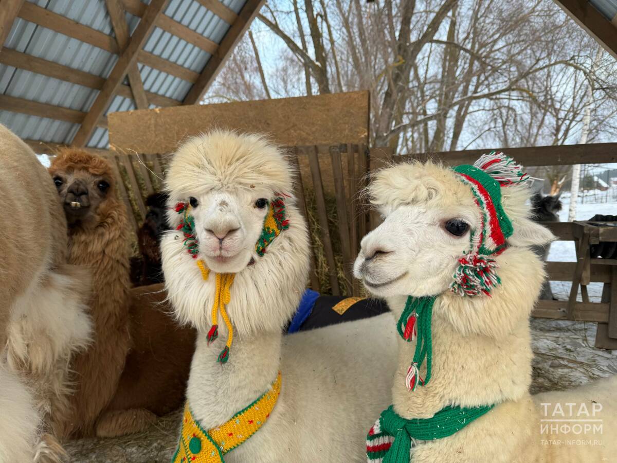 В Татарстане альпаки готовы к Новому году — их нарядили в праздничные шапочки