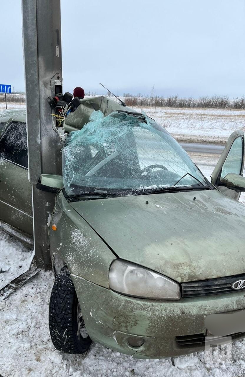 Авто влетело в столб со снежной трассы в РТ, пострадал пассажир автомобиля