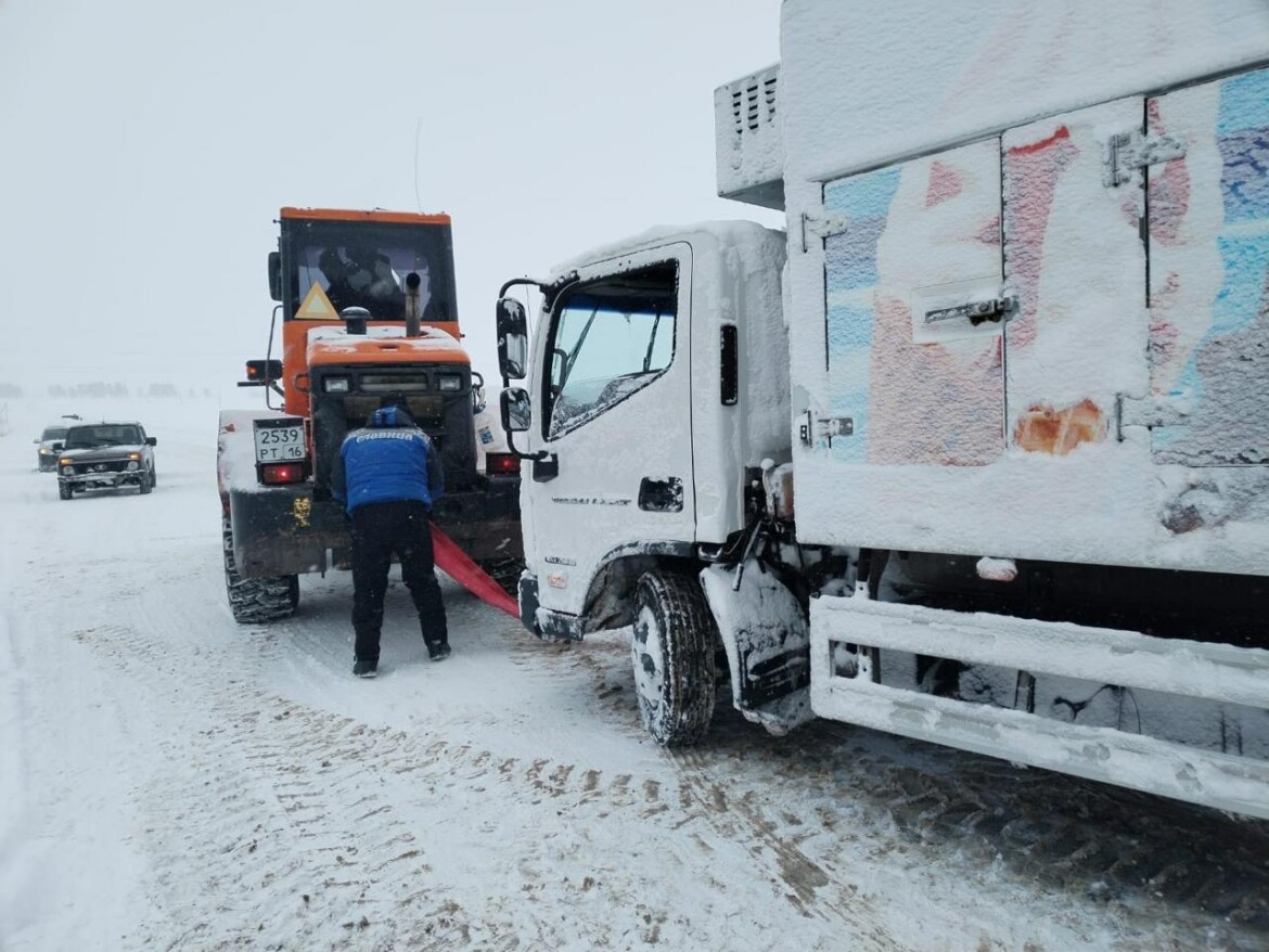 Выяснилось, что водитель не справился с управлением, а транспорт выехал на обочину, влетев в сугроб. Автоинспектор привлек на выручку большегрузу спецтехнику, которая взяла грузовик на буксир.