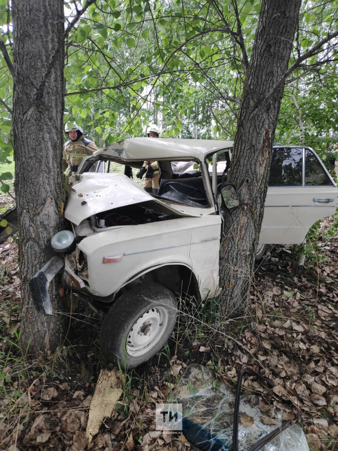 По словам очевидцев, автомобиль вылетел с трассы и на большой скорости въехал в дерево. От сильного удара легковушку порядочно смяло.